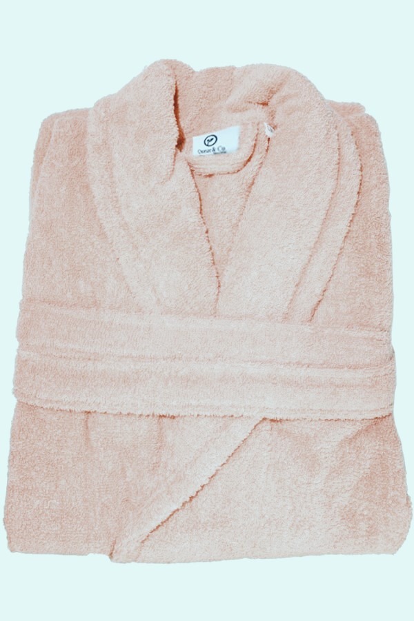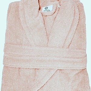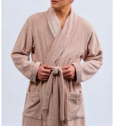 Halatul de baie este produs dintr-o tesatura tip prosop, din fire de bumbac 100%, cu un gramaj de 450g/mp. Aceasta tesatura este densa, buclata, uniforma, moale si foarte placuta la atingere. Poate fi purat, atat dupa baie, tesatura absorbind foarte repede apa, cat si in saloanele de cosmetica sau spa. Este foarte usor de intretinut, nu necesita calcare.