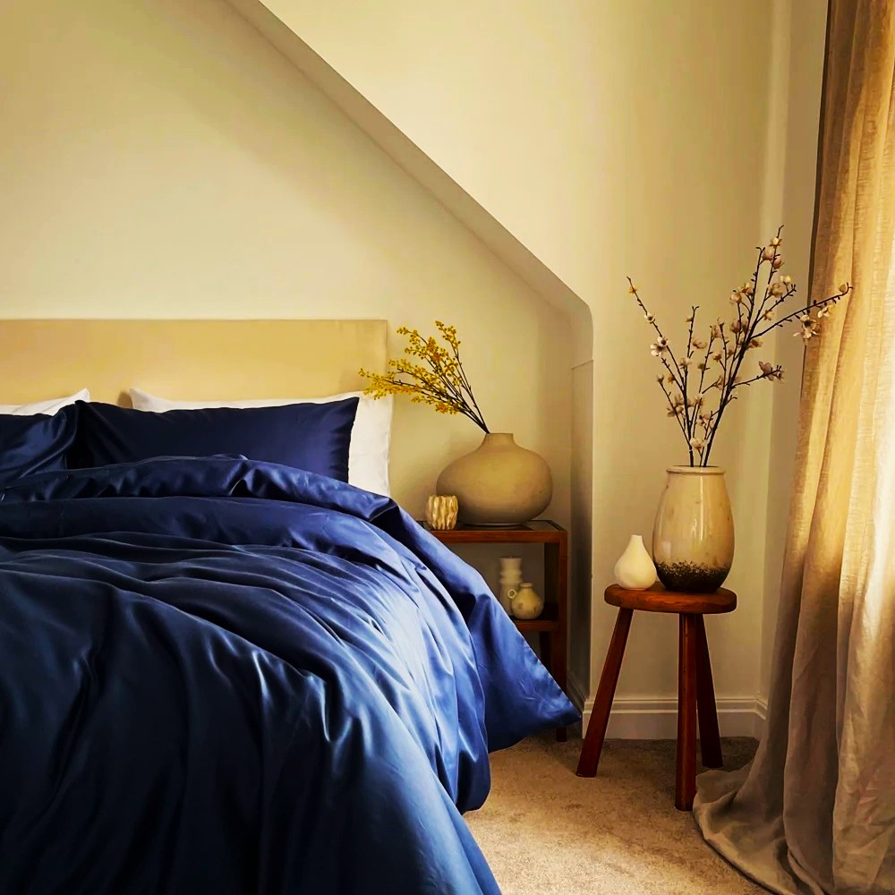 Cearsafurile de pat sunt finisate cu tiv de 1 cm si husa pentru pilota are o deschidere de 60 cm, finisata tot cu tiv de 1 cm, pentru a permite introducerea pilotei. Fetele de perna, care au margine decorativa de 5 cm, au inchidere tip flap, pe toata latimea de 50 cm si sunt finisate cu tiv de 1 cm. Materialul este petrecut aproximativ 15-20 cm, pe verso, asigurand fixarea umpluturii in interior.