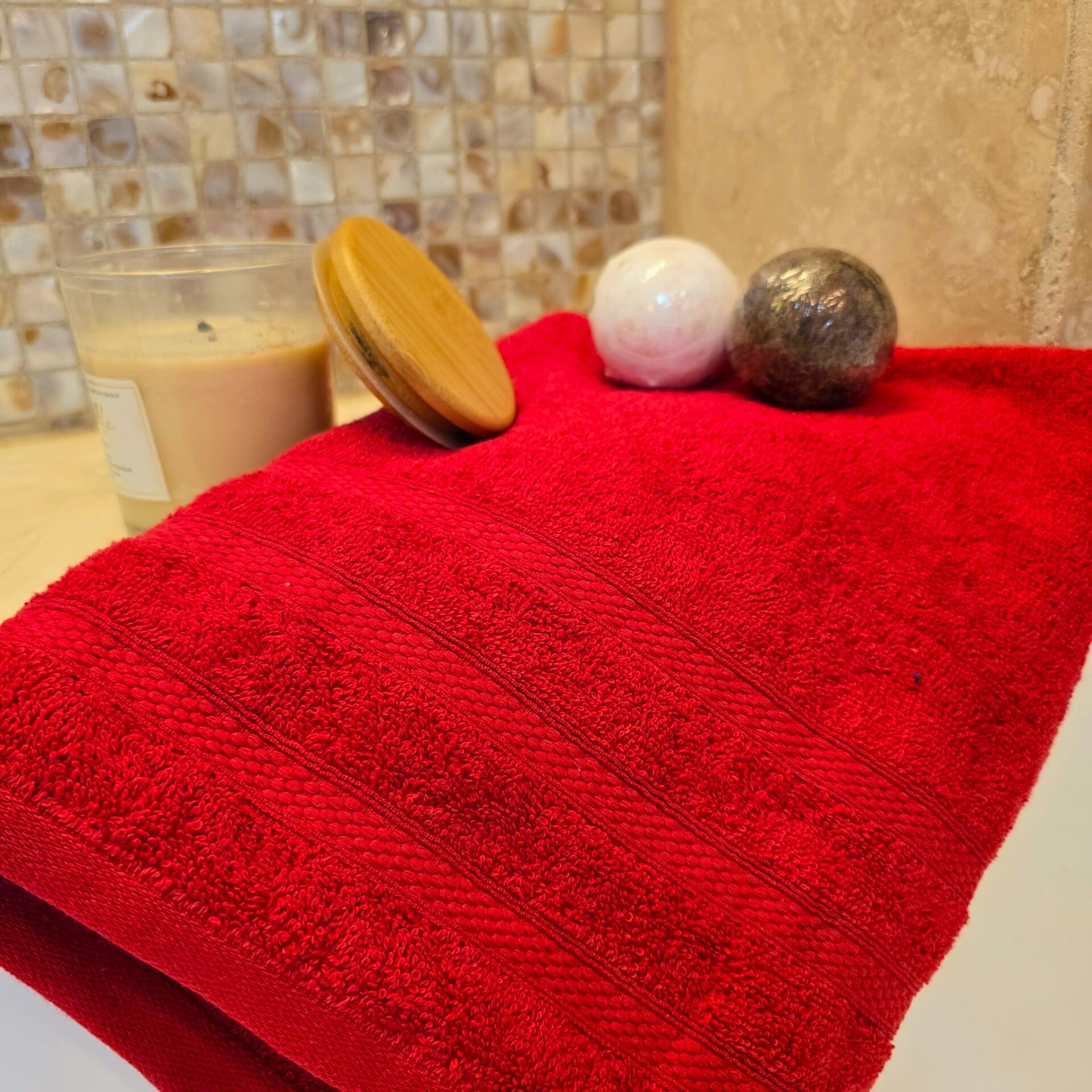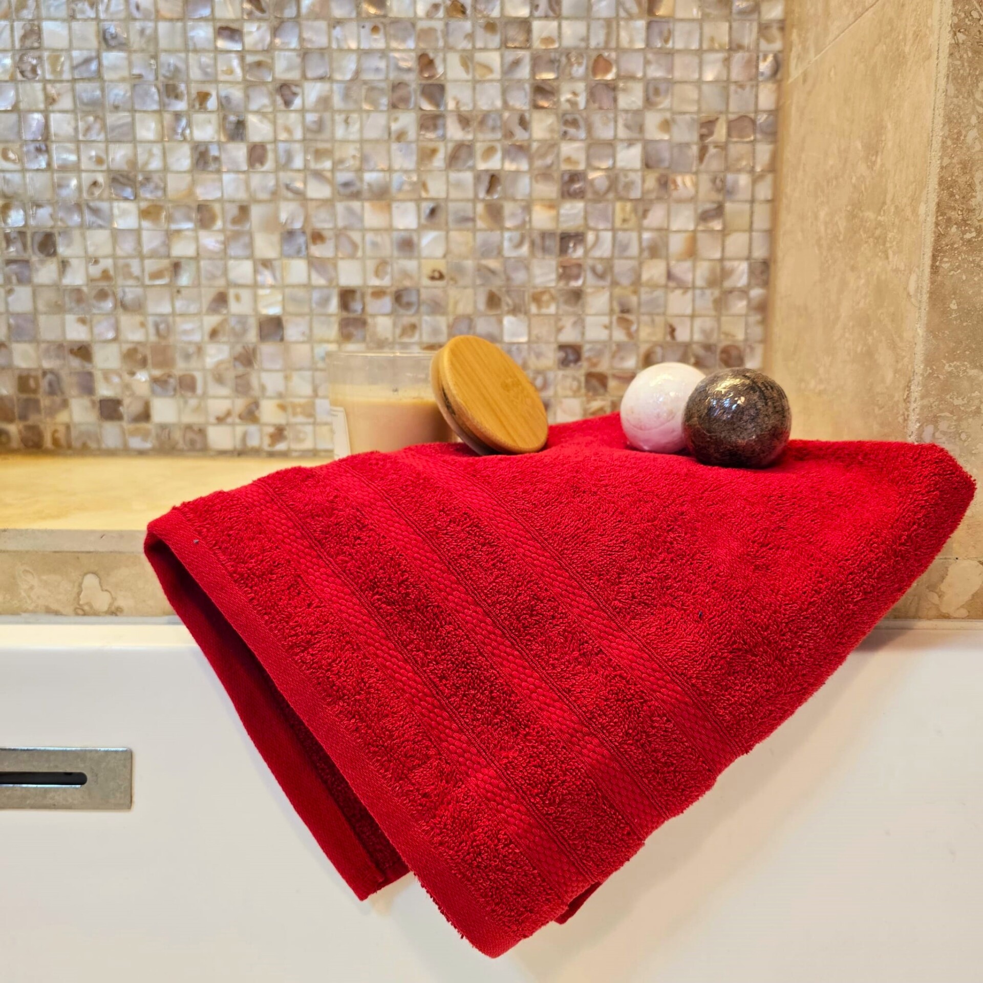 Prosop baie Tess Jacquard – 100% Bumbac, 400g/mp, rosu