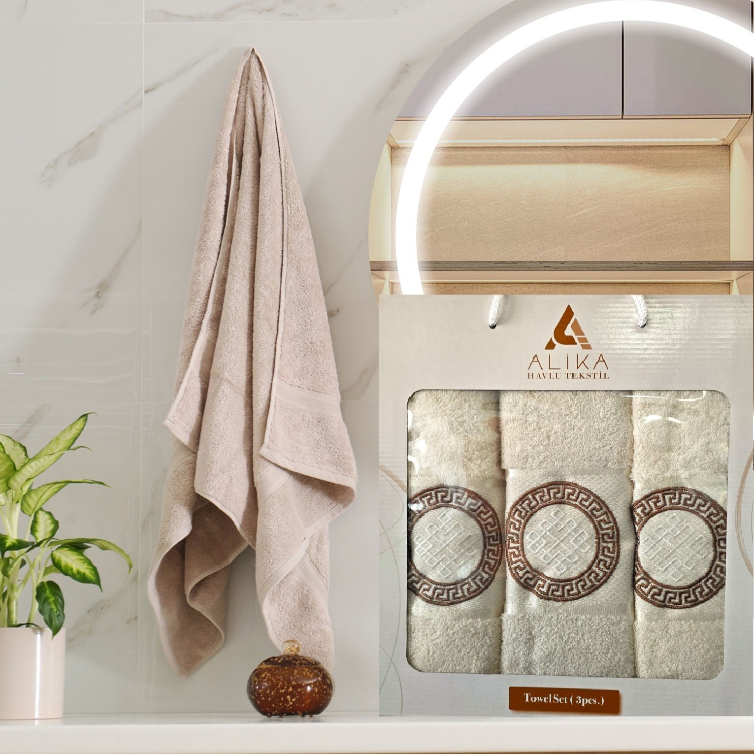 Pachetul de 3 piese contine: 2 prosoape baie 50×90 cm si 1 prosop baie 70×140 cm